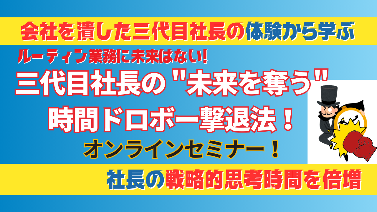 三代目社長の "未来を奪う"時間ドロボー撃退法!オンラインセミナー開催日程